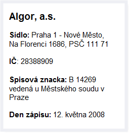 Představenstvo společnosti Algor, a.s., se sídlem Praha 4 -